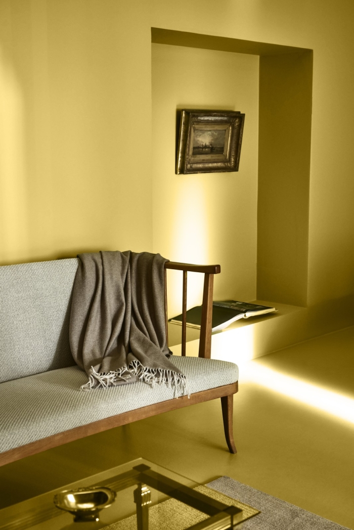 Kiekviename interjere ši spalva atlieka vis kitokį vaidmenį – gali atrodyti švelni ir natūrali, paslaptinga ir rafinuota arba žaisminga ir teikianti energijos. Derinama su ryškiais akcentais arba švelniomis neutraliomis spalvomis ji atspindės Jūsų stilių ir padės pasiekti emocinę pusiausvyrą. Išvyskite, kaip ši spalva tarsi chameleonas keičia atspalvį sąveikaudama su aplinka ir mėgaukitės jos kuriama atmosfera.